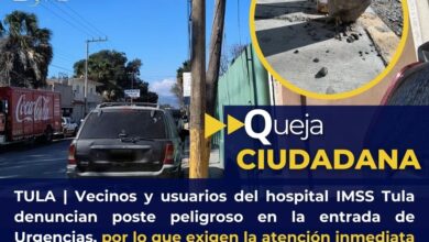 Poste a mitad de la calle pone en riesgo a vecinos del Barrio La Mora en Tula