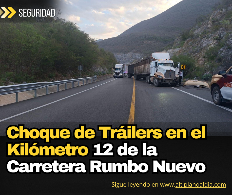 Jaumave – Un fuerte choque entre dos tráileres se registró la mañana de este miércoles en el kilómetro 12 de la carretera Rumbo Nuevo, lo que provocó una significativa interrupción en el tránsito en esta importante vía de comunicación. Las autoridades locales ya se encuentran en el lugar para atender la situación y tratar de reestablecer la circulación lo más pronto posible.