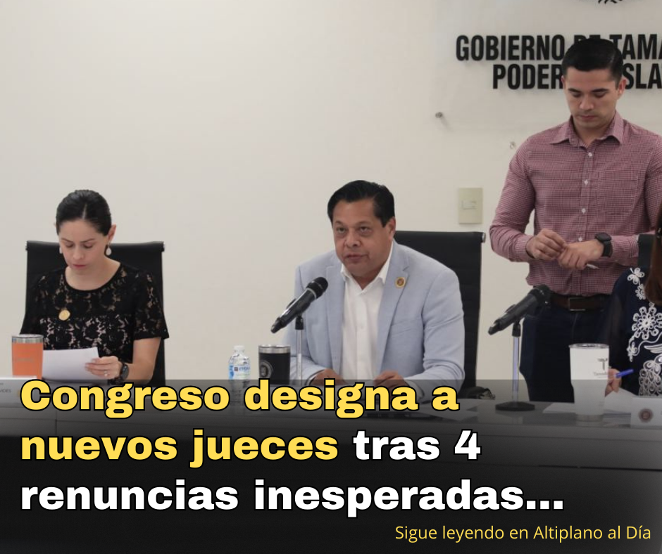 Ciudad Victoria, Tamps. — En una sesión express pero contundente, la Diputación Permanente del Congreso del Estado aprobó este jueves la designación de cuatro nuevos jueces de Primera Instancia, luego de que sus antecesores —ya electos— presentaran su renuncia voluntaria al cargo.