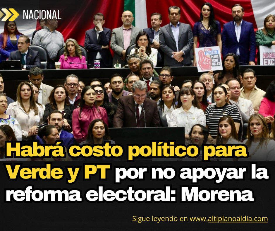 Habrá costo político para Verde y PT por no apoyar la reforma electoral: Morena