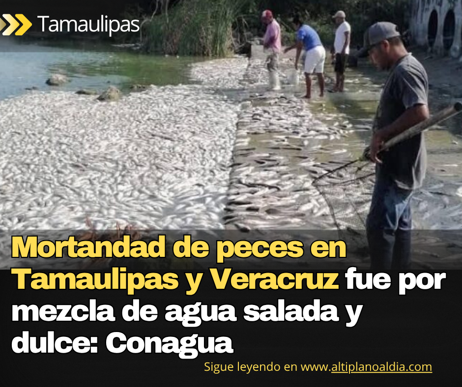 La Comisión Nacional del Agua (Conagua) informó que la reciente mortandad de peces registrada en el sur de Tamaulipas y el norte de Veracruz fue provocada por la apertura de una compuerta, lo que generó la mezcla de agua dulce con agua salada y alteró el equilibrio del ecosistema.
