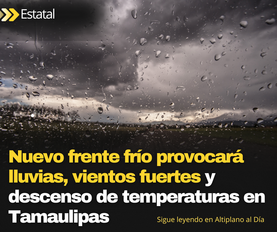 Protección Civil de Tamaulipas informó que este lunes un nuevo frente frío cruzará el estado, lo que ocasionará lloviznas y lluvias ligeras dispersas, así como un evento “Norte” con ráfagas de viento que podrían alcanzar entre los 40 y 60 kilómetros por hora.