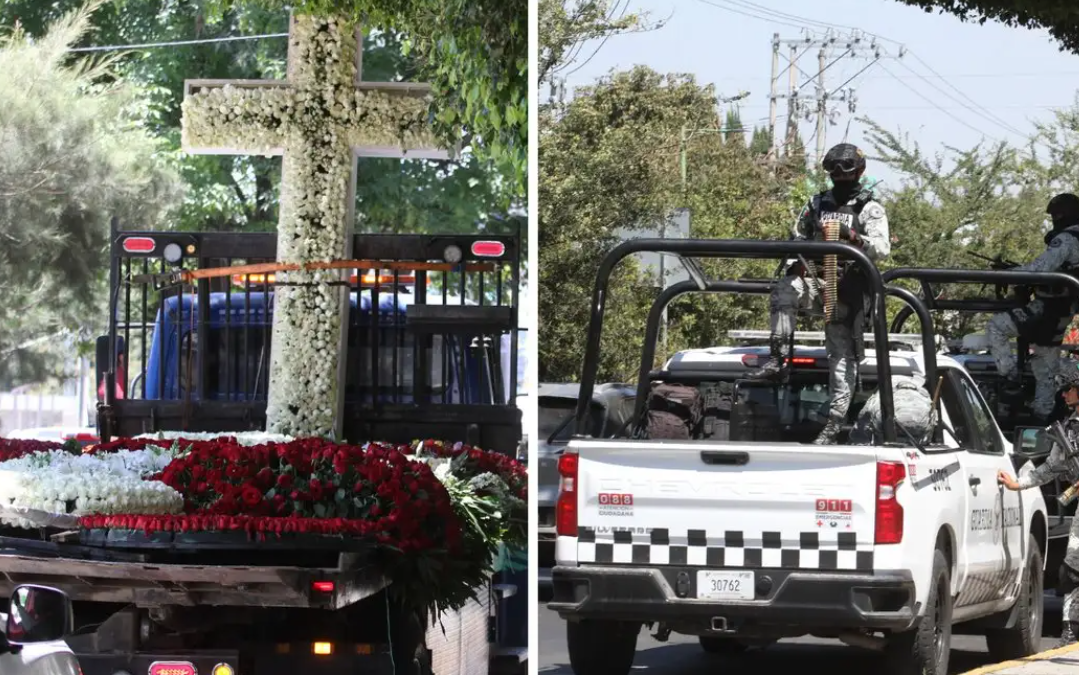 También llegaron dos carrozas que serían utilizadas para transportar los restos del capo. La funeraria La Paz amaneció rodeada de elementos de la Guardia Nacional y el Ejército Mexicano.