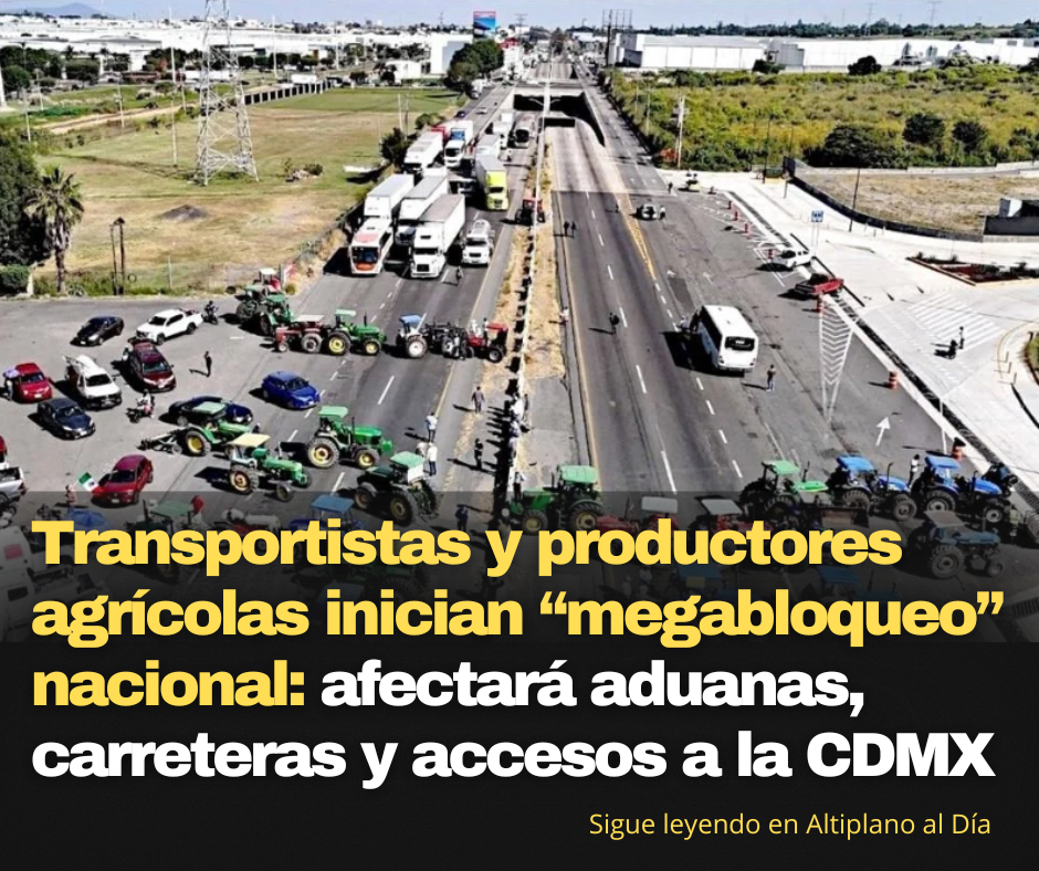 Ciudad de México.— Organizaciones de transportistas de carga y productores del sector agrícola iniciaron este lunes el “megabloqueo” anunciado desde la semana pasada, una protesta coordinada que afectará algunos de los principales accesos carreteros, casetas y aduanas fronterizas del país. Las movilizaciones comenzaron desde las 06:00 horas y se espera que los bloqueos estén plenamente instalados antes de las 08:00.
